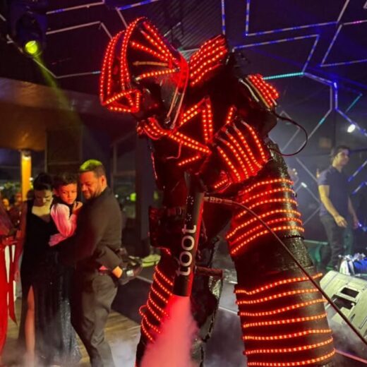 • Robôs de LED ou personagens interativos na pista